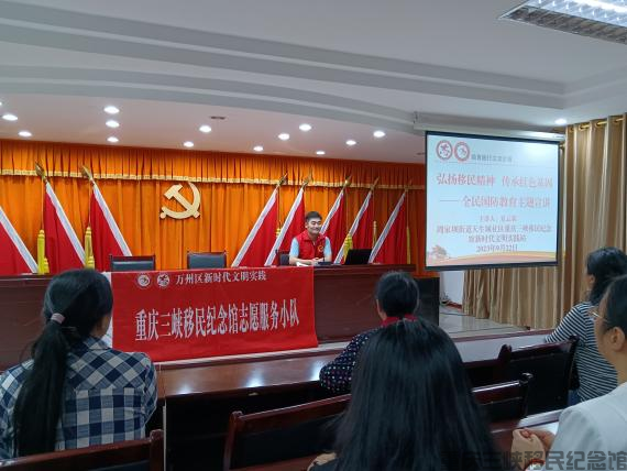 9月22日,“伟大壮举 辉煌历程”——三峡移民展与移民精神宣讲活动走进万州区周家坝街道天生城社区。通过讲解员声情并茂的讲解,让社区党员干部和群众更深入地感受三峡工程的兴建,百万移民的搬迁与奉献和现库区发生的天翻地覆变化。