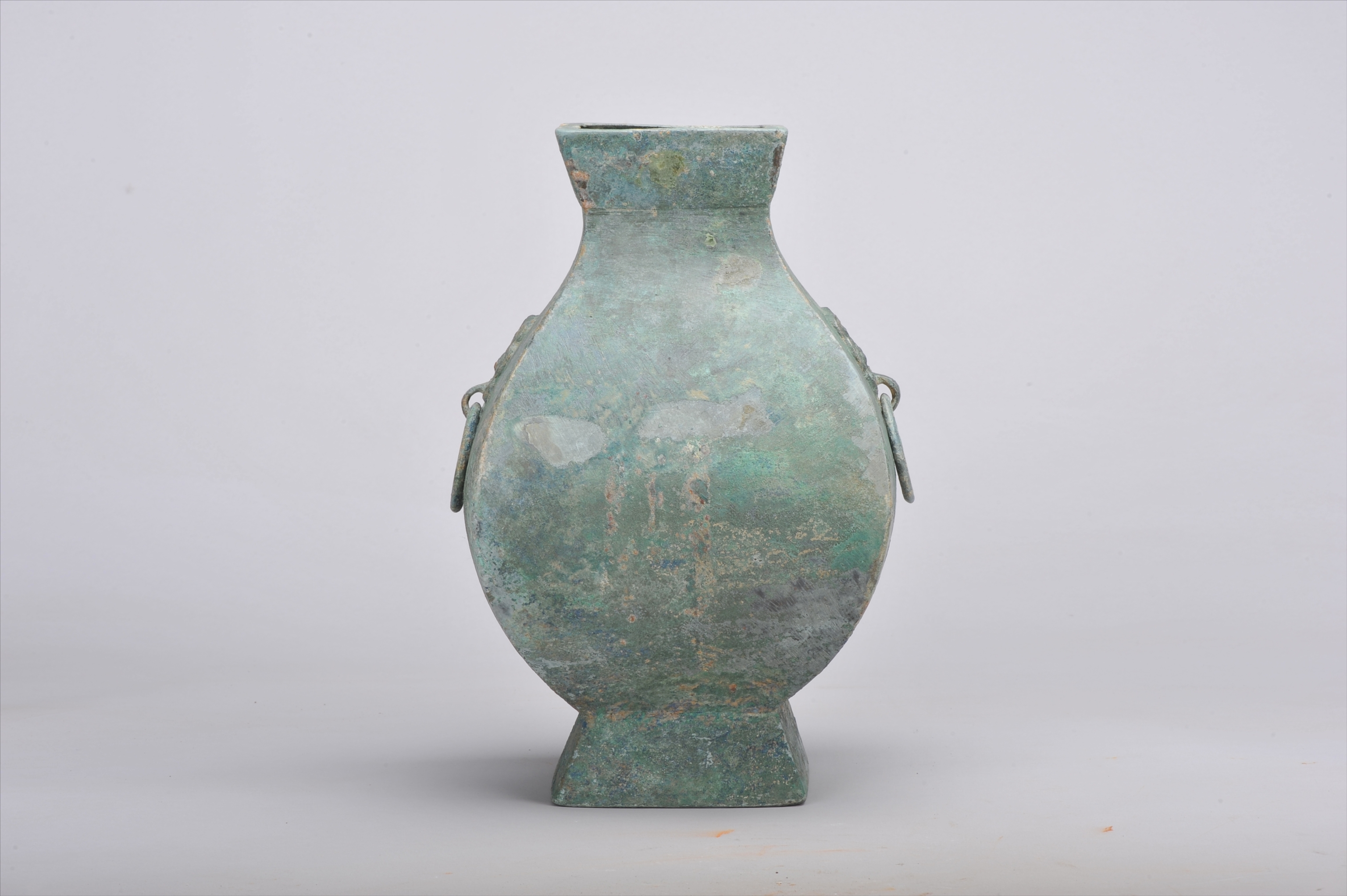 2005年万州天丘墓群出土。铜钫为方体四棱式,方口微侈,平唇,束颈,溜肩,四棱腹,腹四面鼓出,方圈足略外撇,肩部饰一对铺首衔环。此器物保存较好,工艺精美,器底阳文铭文“王氏日入千万”清晰,是三峡库区出土的为数不多带有铭文的汉代青铜器,对研究汉代的思想文化具有重要的学术价值。